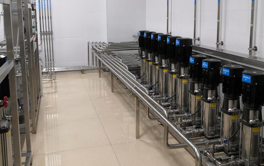石門縣婦幼中央分質供水系統包含:預處理部分、一級反滲透部份、檢驗用水部分、直飲水抑菌保鮮變頻供水系統、醫用水抑菌保鮮變頻供水系統、智能控制系統、機房抑菌系統等。采用兩套主機并行運行,可自動切換。供水系統實現全流程封閉式循環管路輸送,輸送管路采用高品質不銹鋼管。系統用水覆蓋消毒供應中心、檢驗科、手術室、兒科、產科、各個直飲水用水點等。