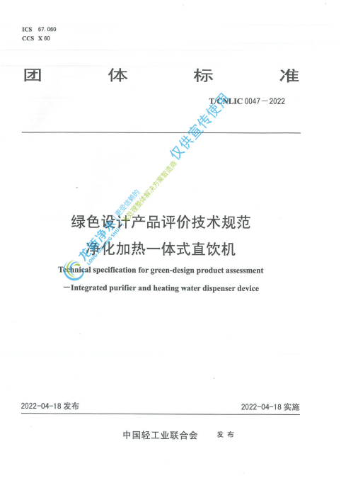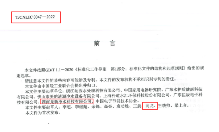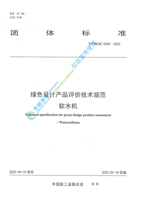 近日,由湖南龍新凈水科技有限公司參編的《綠色設計產品評價技術規(guī)范凈化加熱一體式直飲機T/CNLIC0047-2022》、《綠色設計產品評價技術規(guī)范軟水機T/CNLIC0046-2022》,經(jīng)由中國輕工業(yè)聯(lián)合會發(fā)布,被部委采信。