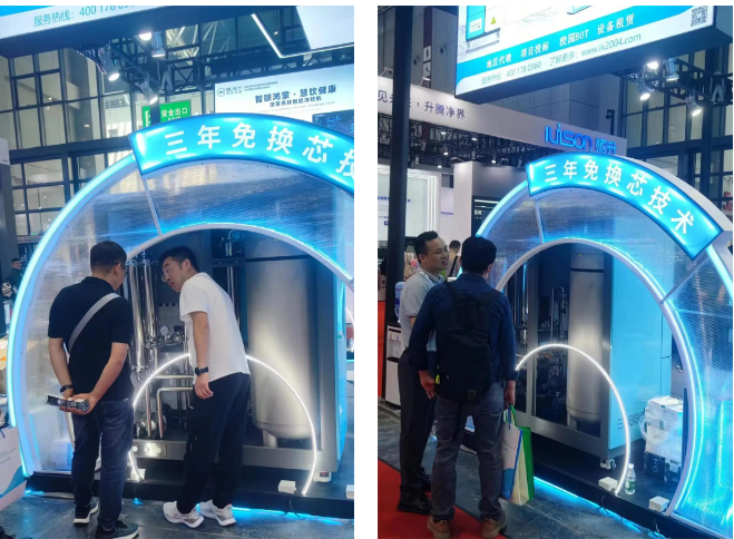 在本次展會上,龍新凈水攜新品智慧凈飲水設備參展,吸引了大批參觀者的目光。智慧凈飲水設備適應于多種源水復雜的環境,有效滿足野外工地,廚房,偏遠學校、農村、鄉鎮事業單位,戶外加油站、高速收費站、山頂景區、商凈廚房等場景的用水需求。三年免換濾芯技術更是讓不少參觀者駐足觀摩。智慧凈飲水設備可租,可售的模式,以其投入成本小,回本快等優勢吸引眾多參展者前來展位咨詢了解。