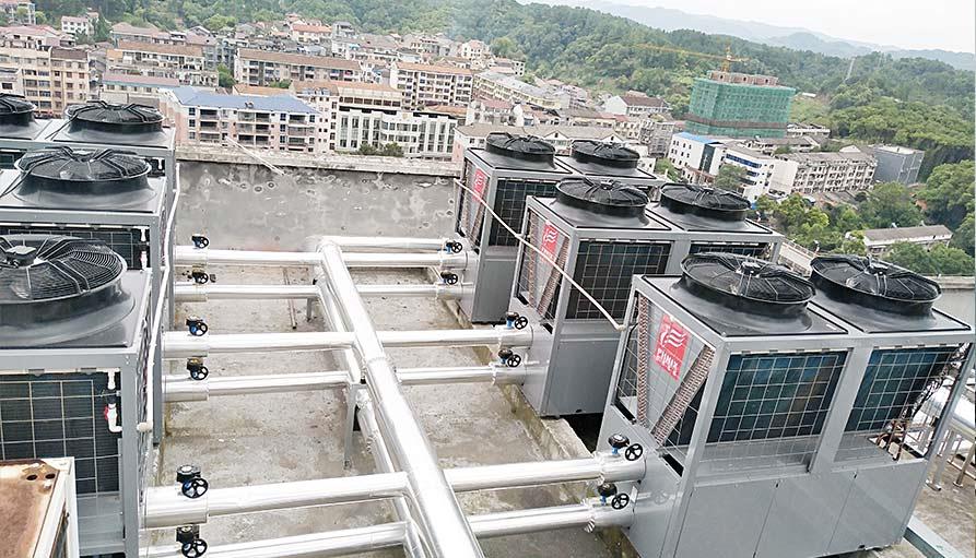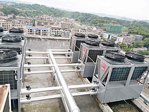 中央熱水系統(tǒng)是采用空氣能為熱源,24小時不間斷地集中制熱,再通過保溫管網(wǎng)、大通量、恒溫的供到各熱水用水點。隨著工業(yè)的快速發(fā)展,環(huán)境污染和能源危機(jī)已受到全世界人民的關(guān)注且成為人類必須面對并加以解決的重大課題。空氣能熱泵系統(tǒng)由于具備了安全的結(jié)構(gòu),節(jié)能效果顯著,使用壽命長、無有害氣體排放、未使用礦物燃料造成環(huán)境污染等諸多優(yōu)點,因此越來越受到人們的歡迎。